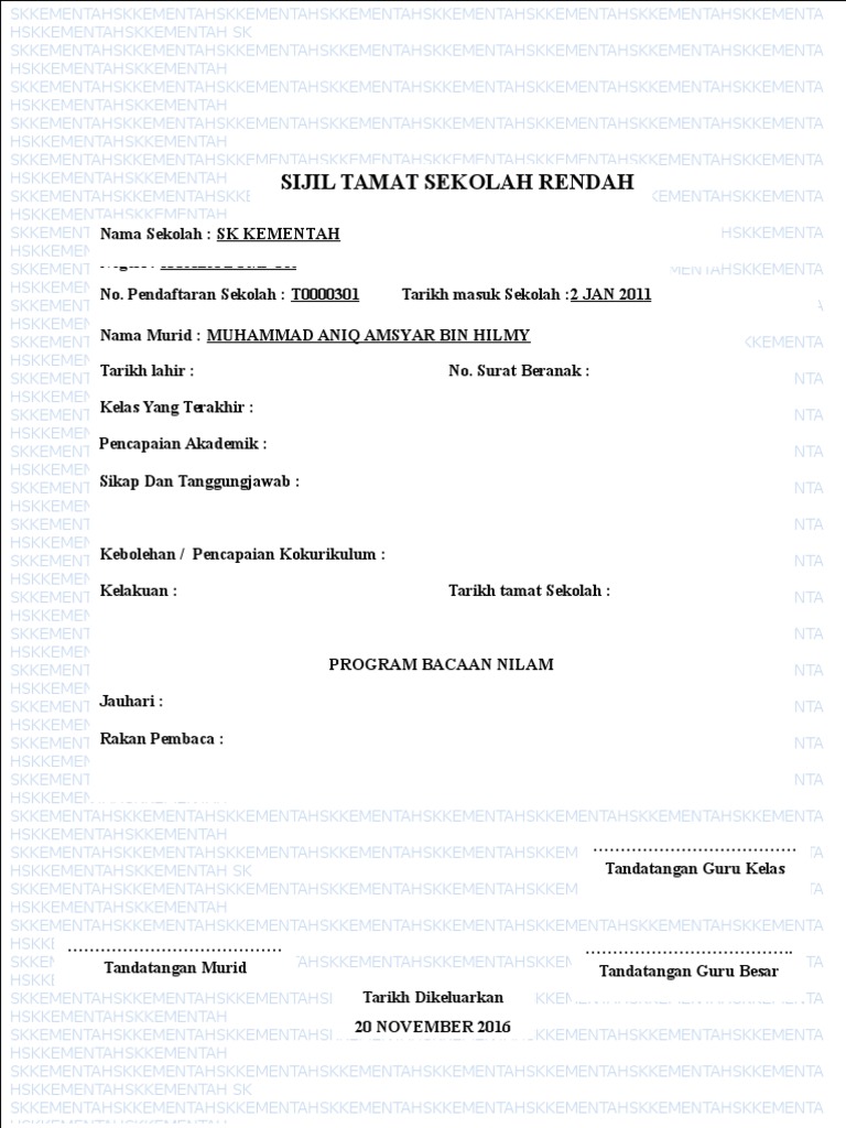 Untuk pengetahuan kalian, sijil berhenti sekolah perlu dirujuk ke sekolah terakhir tempat anda bersekolah. Sekolah tak ada simpan lagi sijil asal. Pi tarikh lahir tarikh masuk sekolah : Ulasan untuk sijil berhenti sekolah tahun 6 biru. Sekolah menengah kebangsaan methodist 36900 tanjong malim, perak.